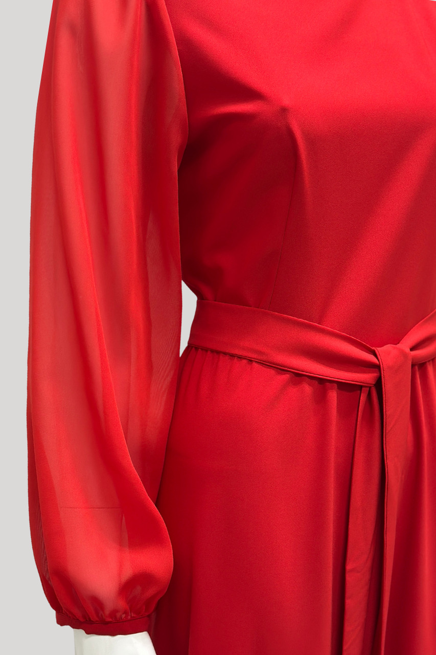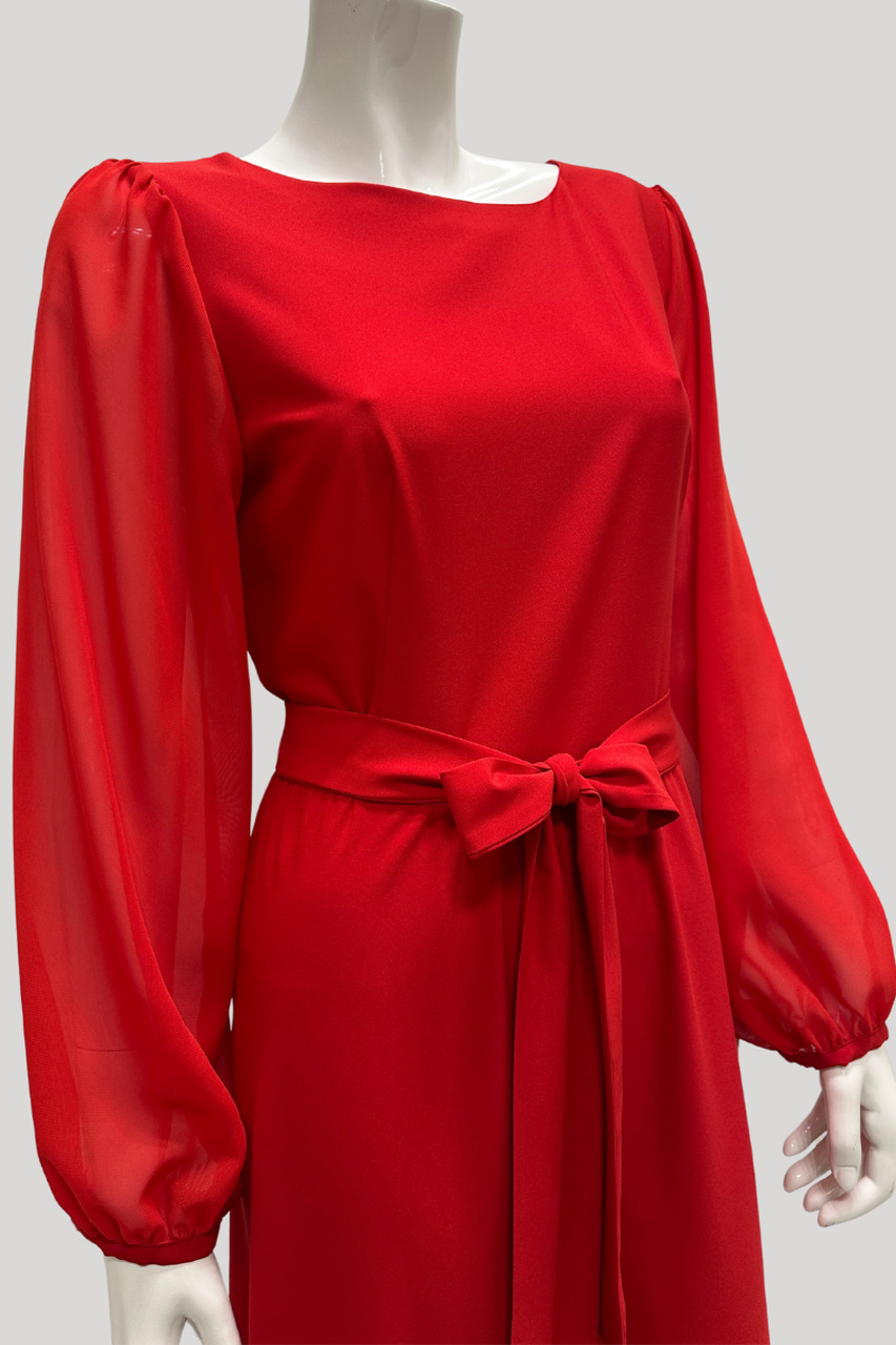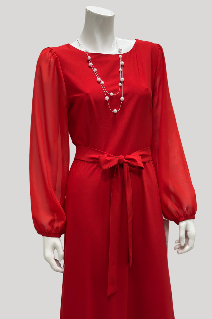Klassikaline punane toon ja naiselikud detailid muudavad selle kleidi ideaalseks valikuks pidulikeks sündmusteks. Elegantselt voogav maksikleit, mis toob iga naise figuuri kaunilt esile.