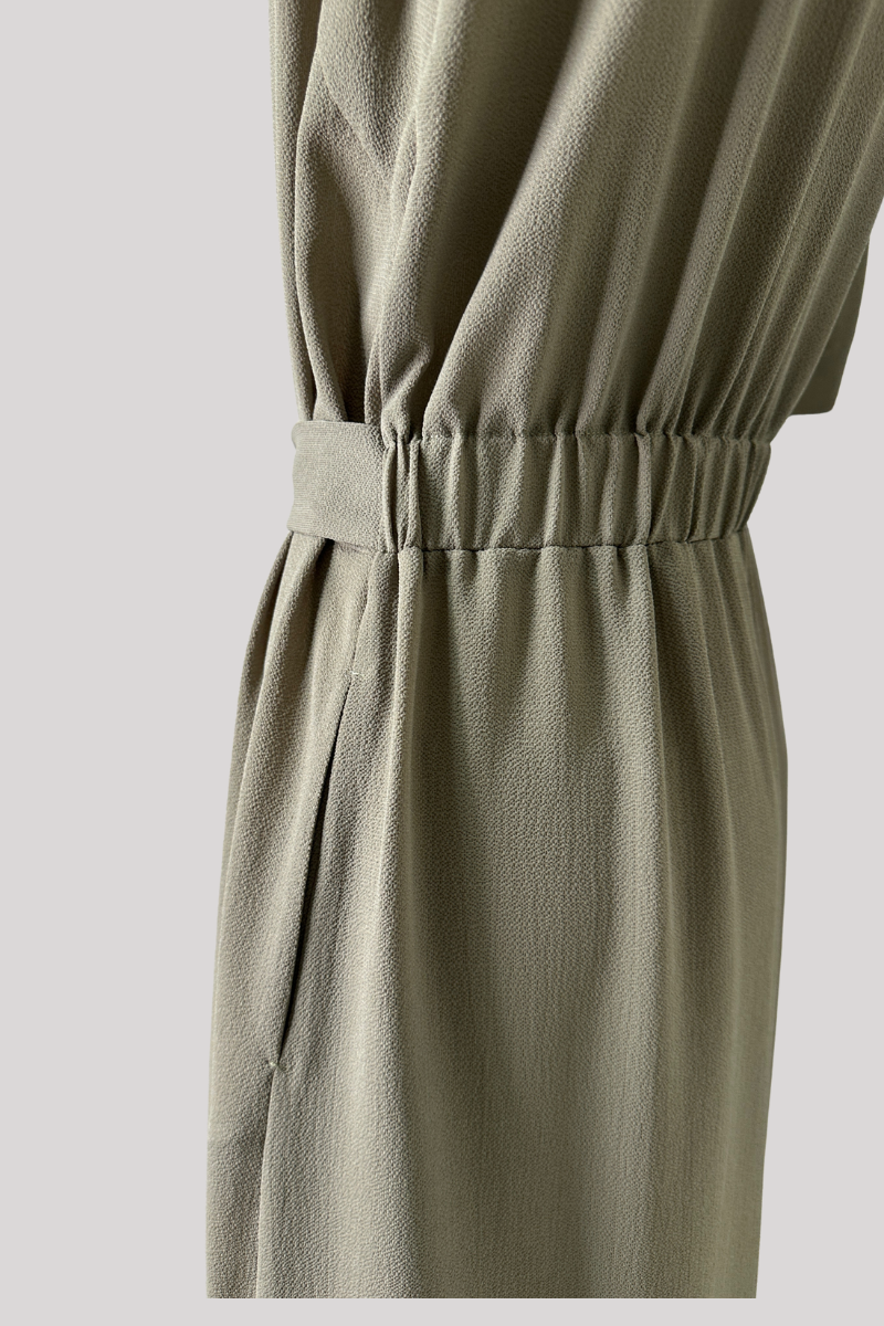 Täienda oma garderoobi selle stiilse ja mugava midi-kleidiga, mis sobib ideaalselt nii igapäevaseks kandmiseks kui ka pidulikematele sündmustele. Kleit on valmistatud kergest ja hingavast kangast, mis tagab suurepärase kandmismugavuse.