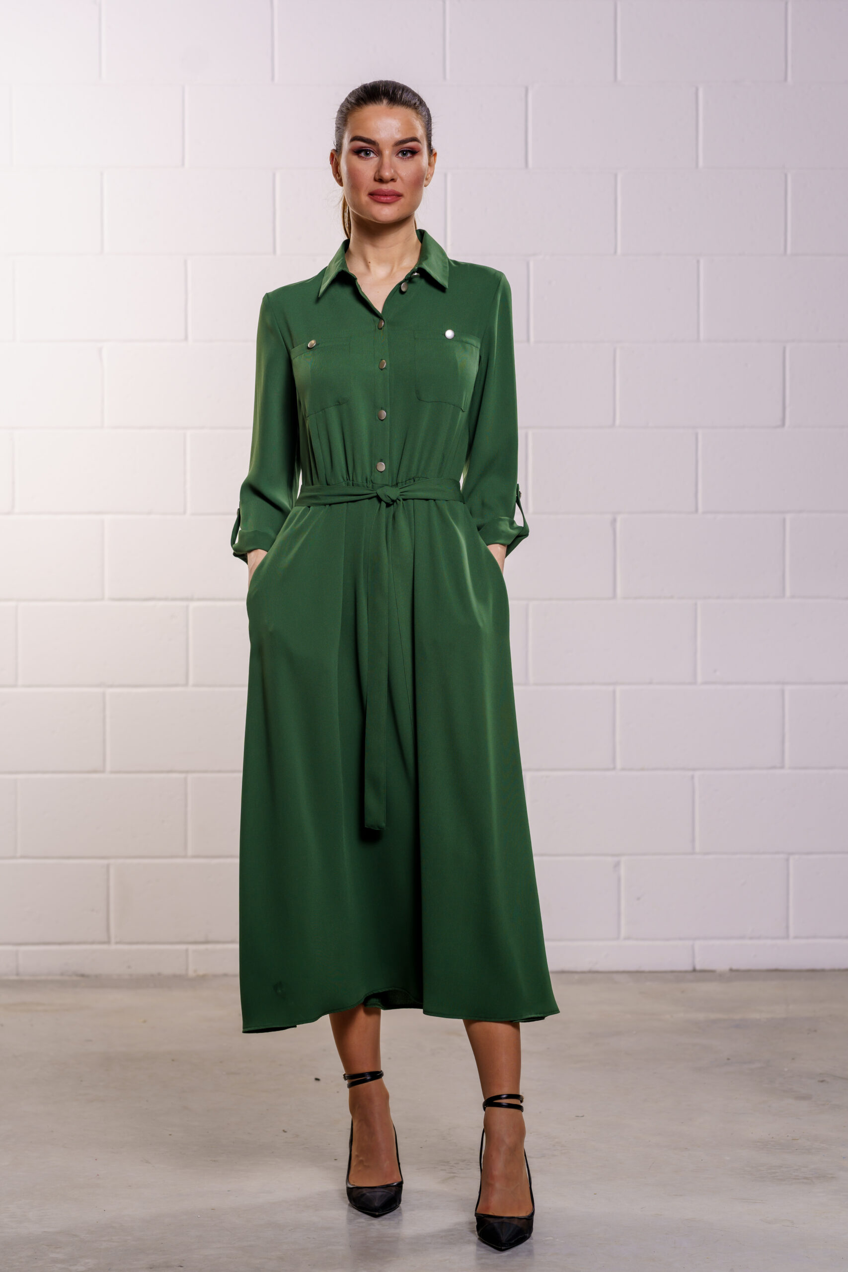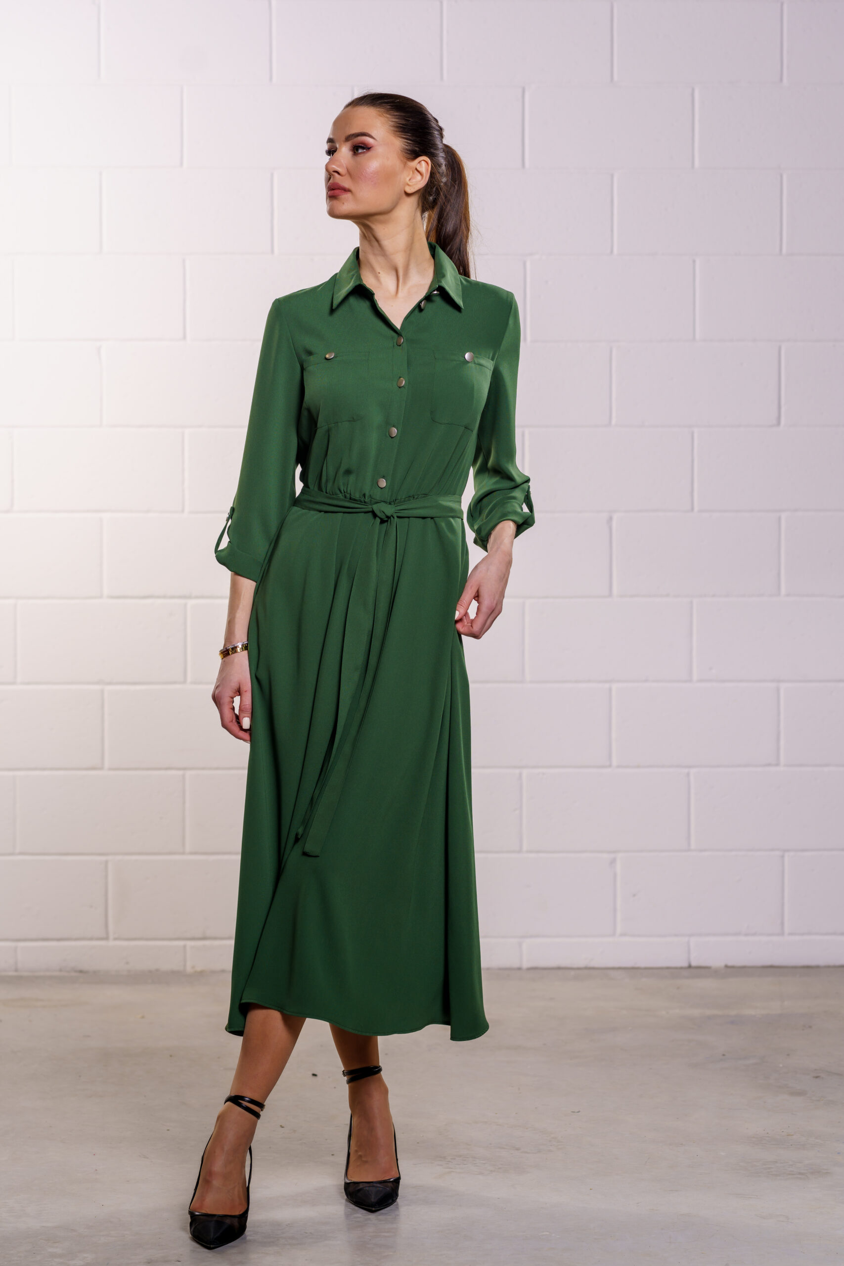 Kleidil on nööbid kuni vööni
